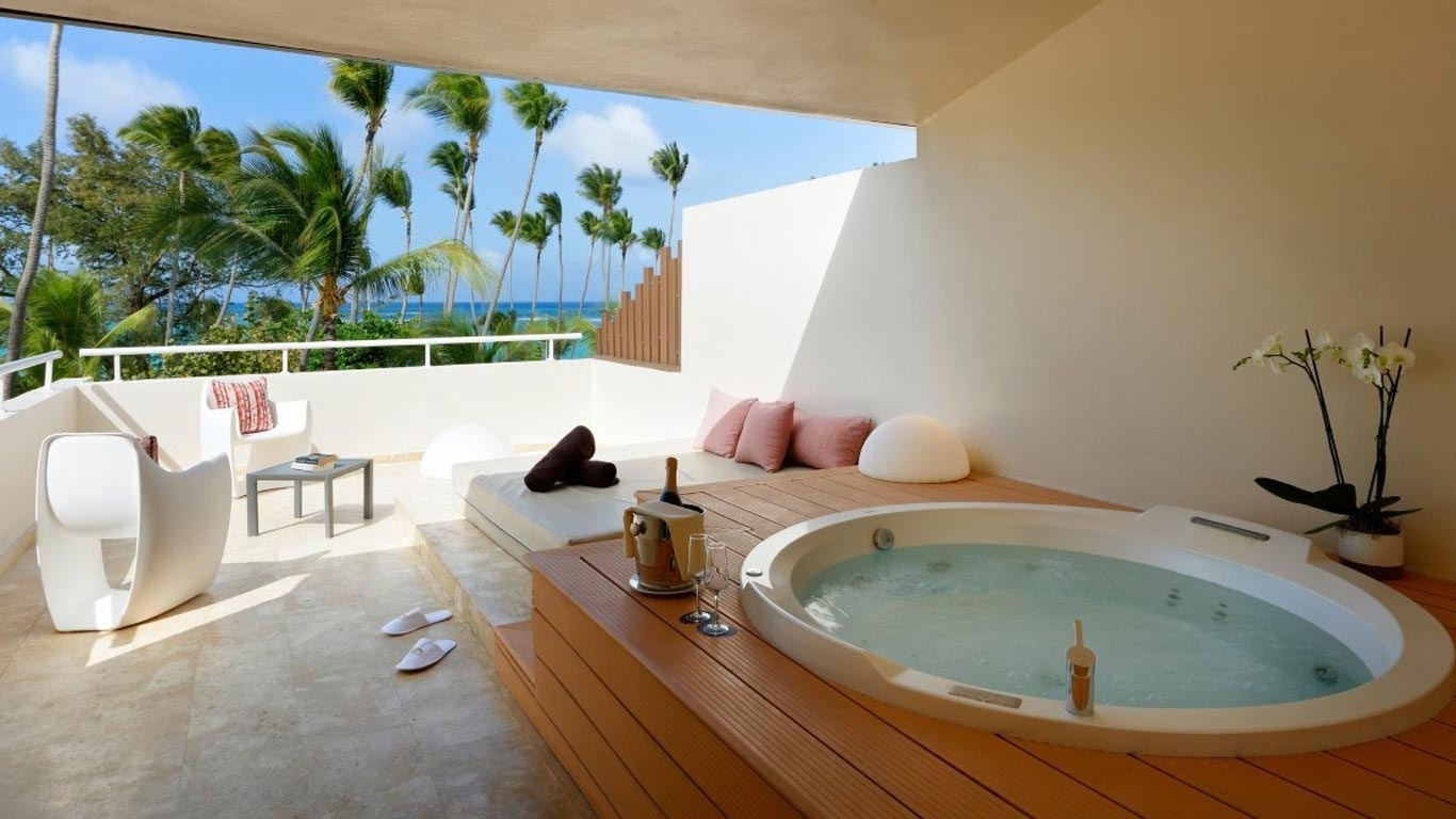 Rooftop Jacuzzi Terrace Suite: Spacious 70m² suite with a private rooftop Jacuzzi®, sofa bed, and serene open-air views—perfect for unwinding and enjoying your Punta Cana getaway.